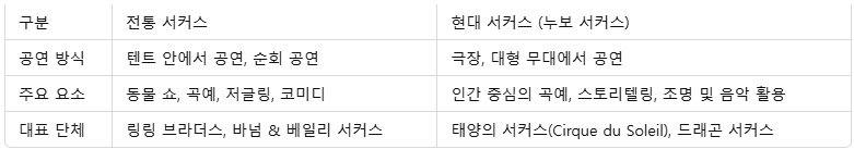🔄 3.2 전통 서커스 vs. 현대 서커스