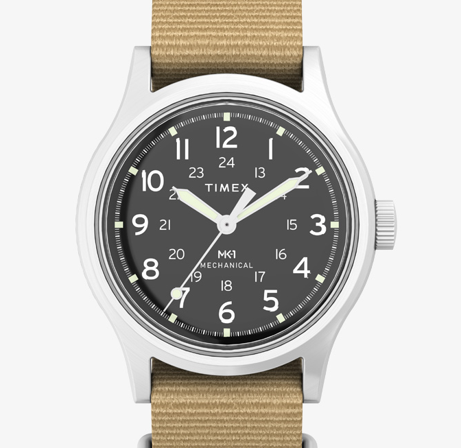 1980년대 캠퍼 모델을 현대적으로 재해석한 MK1은 군용 시계의 견고함과 세련된 디자인을 겸비했습니다. 알루미늄 또는 스테인리스 스틸 케이스와 나토 밴드로 캐주얼 룩에 잘 어울리며, 가격은 약 8~12만 원대입니다.